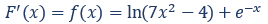 Wir sehen, dass im Zähler des Bruches die Ableitung des Terms im Nenner steht. Das ist typisch für eine abgeleitete Funktion, die im ln steht, da aufgrund der Kettenregel folgendermaßen gerechnet werden muss: